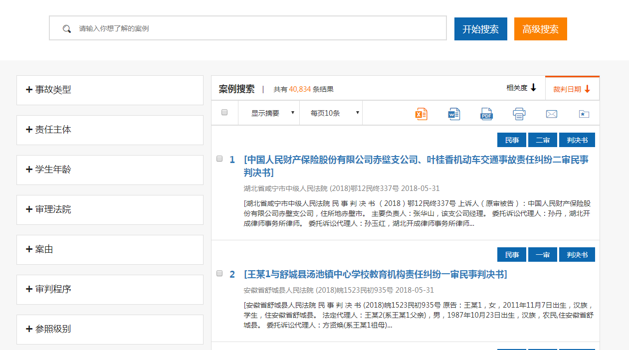 2:在显示的案例页中执行搜索或直接浏览搜索结果列表.