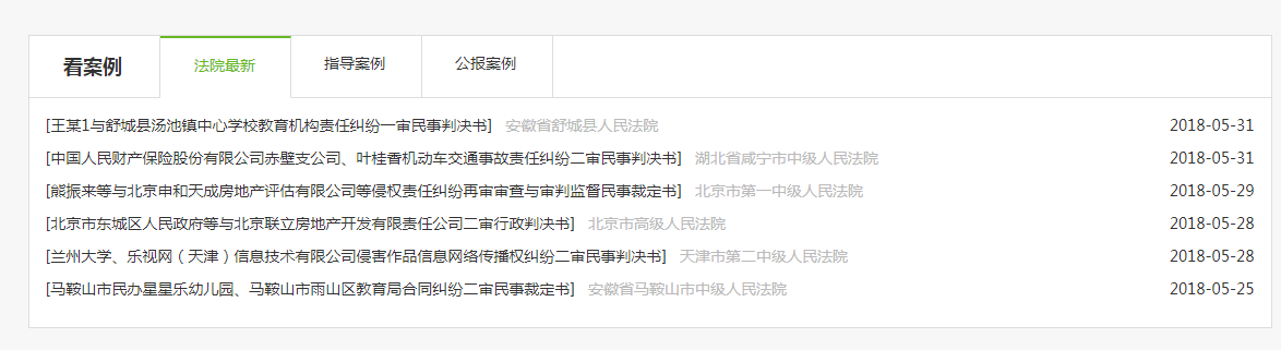 2.最新案例(包含法院最新、指导案例、公报案例)点击即可进入案例详情页